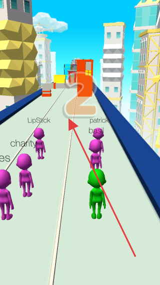 2、游戏开始后,操控绿色【Player】角色在屋顶赛道奔跑,超越紫色对手,留意赛道上的【LipStick】等标识。