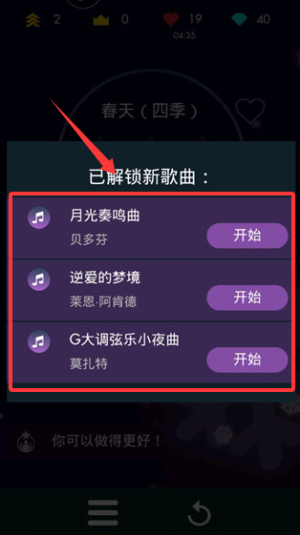 2、第一次闯关可以解锁歌曲,点击图标这个按钮。