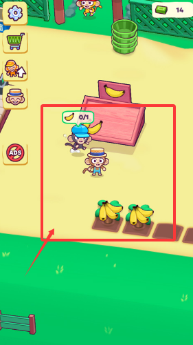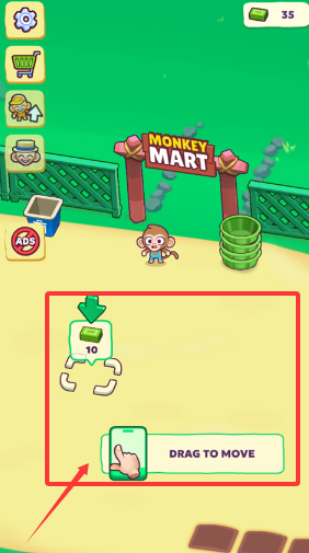 1、进入游戏中,游戏采用了横版滑屏操作,首先需操纵猴子搭建收银台。