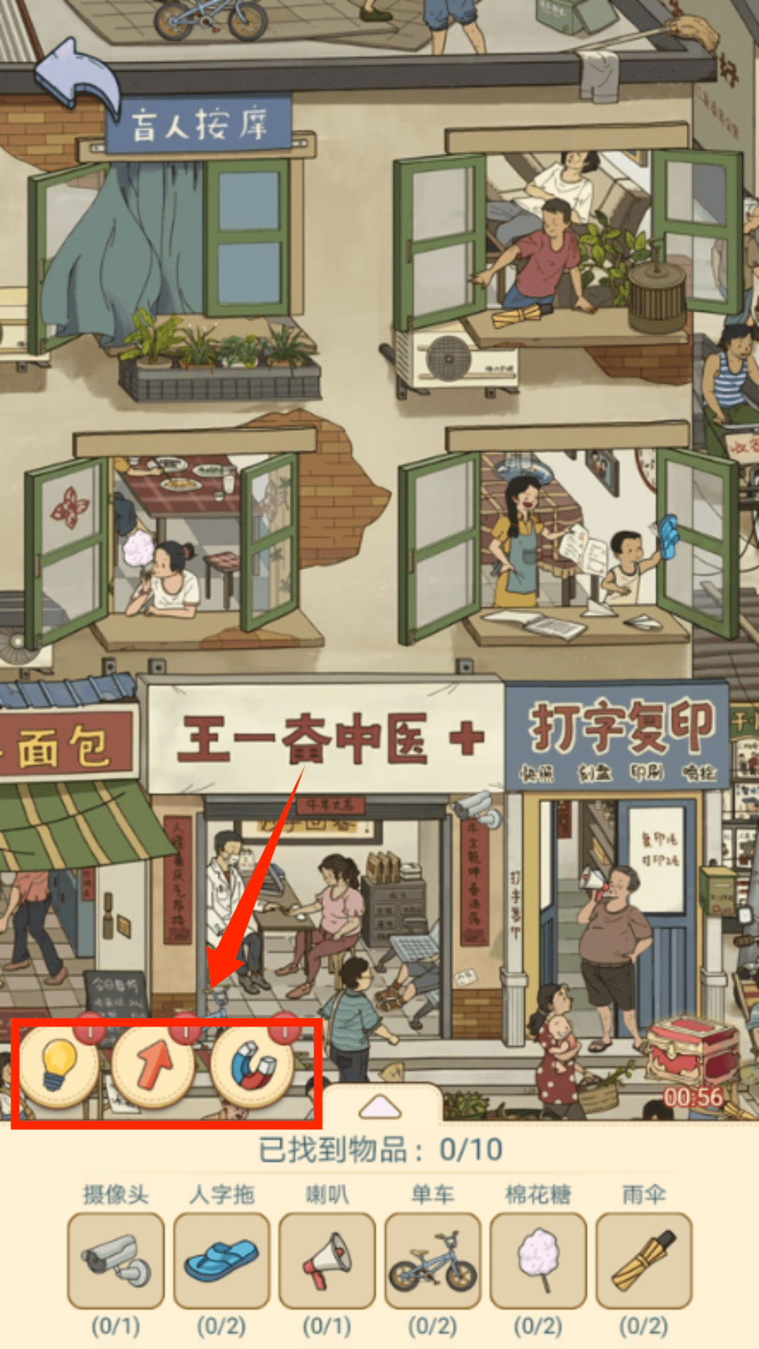2、图示按钮为道具栏,使用道具帮忙通关。