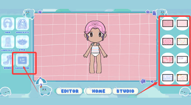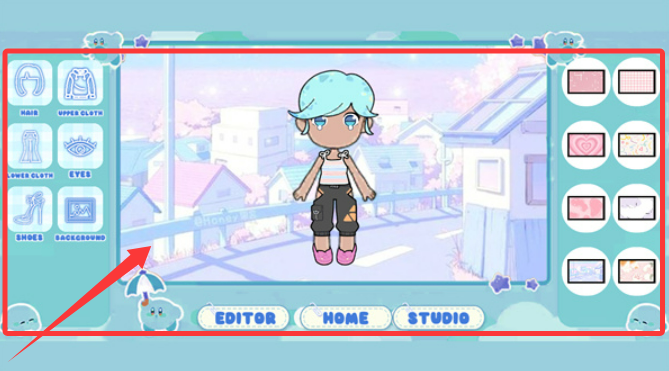 3、点击箭头所指,在右侧还有众多人物背景可以更换。