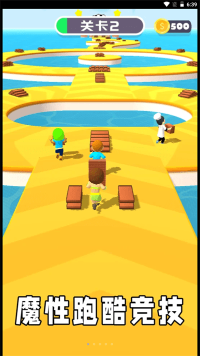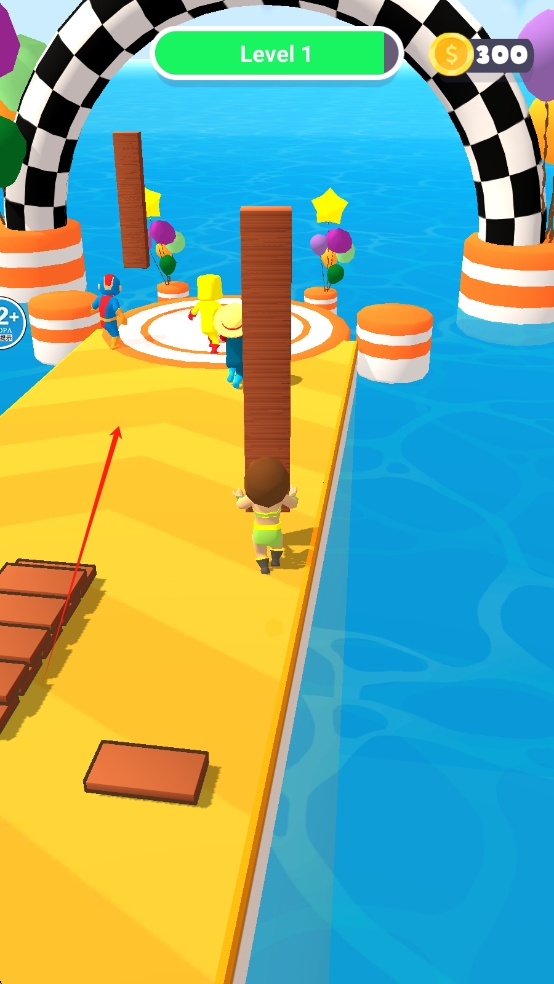 3、当成功利用砖块搭建完整通道并第一个抵达终点,即可完成当前关卡挑战,解锁更复杂的场景与全新搬砖道具。