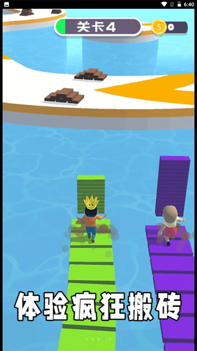 1、创意搬砖玩法:独特的搬砖搭桥机制,需根据地形与障碍灵活分配砖块,在移动中搭建通道,考验策略规划与即时反应能力。