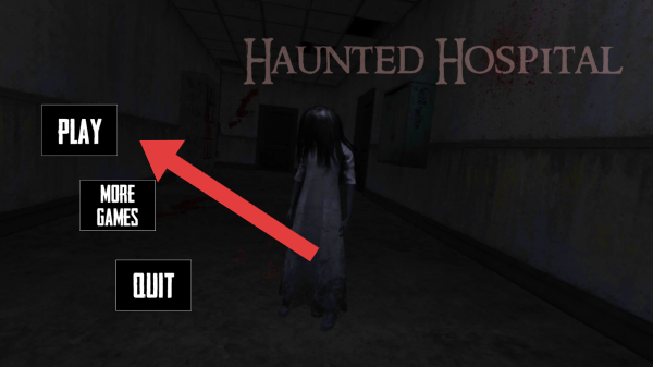 1、画面中有一位长发遮脸、身着白衣的人物站在昏暗血迹斑驳的医院走廊中,根据提示点【PLAY】方可开始游戏。