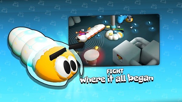 2、在移动过程中,需巧妙躲避墙壁与其他蠕虫的身体,同时找准时机用头部撞击对手蛇头,成功截击即可淘汰对方并获取奖励。