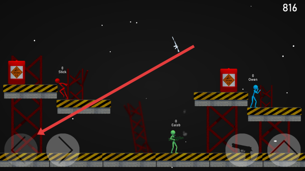 3、操控火柴人移动至武器图标附近,触发交互机制拾取各类枪械、棍棒等战斗装备。