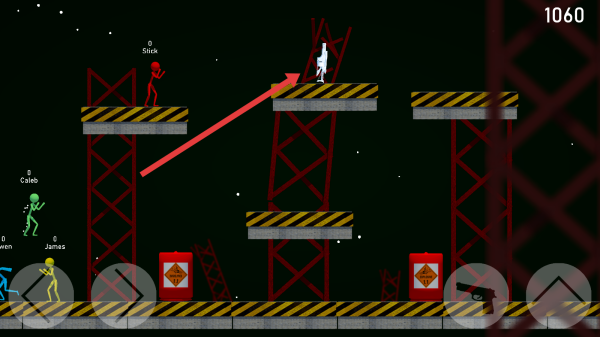 2、在游玩界面点击方向键,精准操控火柴人向上下左右任意方向移动,探索场景。