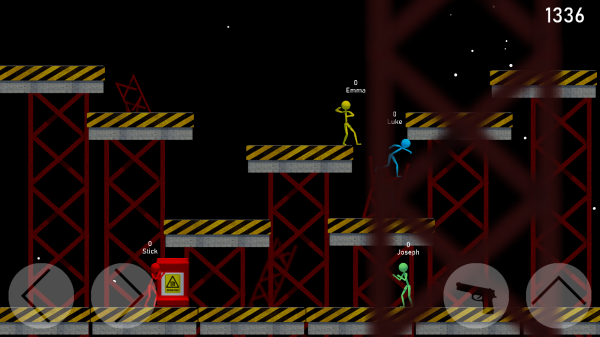 3、好友同屏互动:支持单屏双人对战模式,用户可与好友操控火柴人实时PK,在滑稽皮肤与方块造型的趣味氛围中,感受面对面竞技的欢乐。