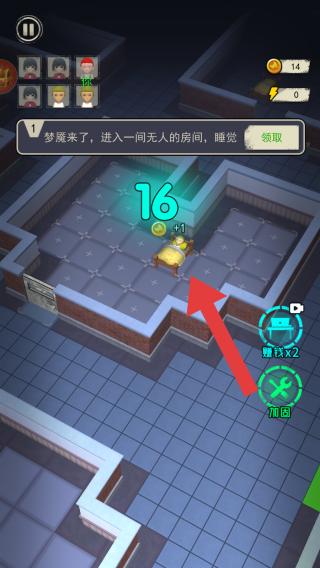 3、画面展示了一个房间布局,玩家可通过此类操作管理资源、升级防御,以抵御梦魇,展现出策略休闲的塔防生存玩法特点。