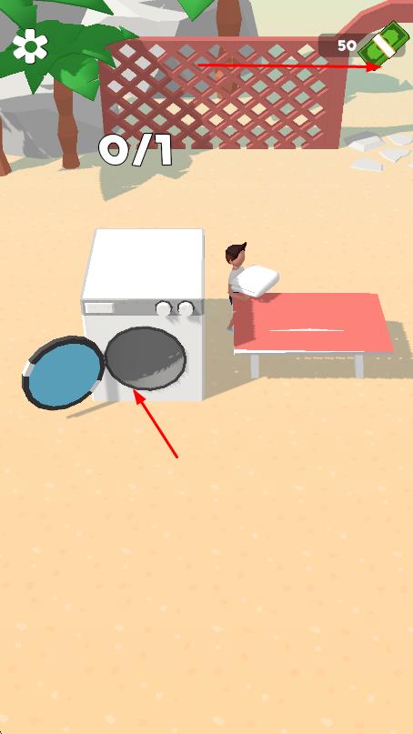 2、进入后跟随引导提示,点击沙滩空地放置首批基础设施,如遮阳伞与躺椅,完成游客接待的基础操作。