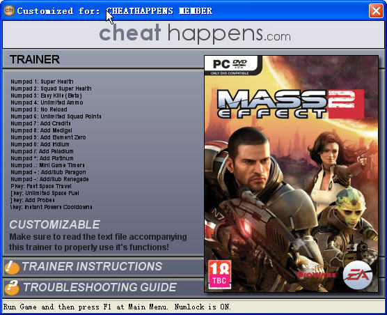 2.游戏主菜单按[F1]激活修改器,激活成功会有Activated声音提示
