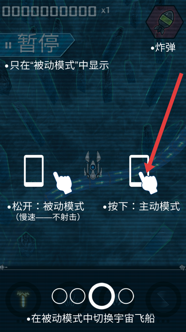 2、熟悉操作界面,按下右侧按钮进入主动模式(快速射击),松开则为被动模式(慢速-不射击)。