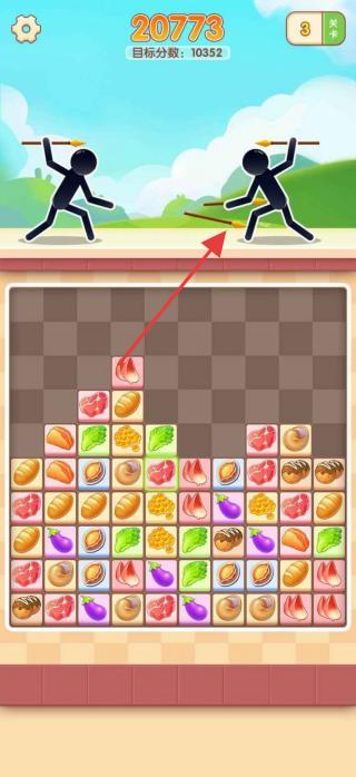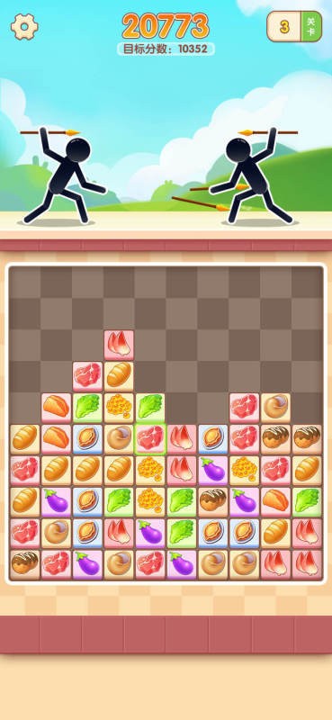 3、在游戏关卡内,滑动点击相同图案进行消除,全力朝着目标分数奋进,同时留意布局。