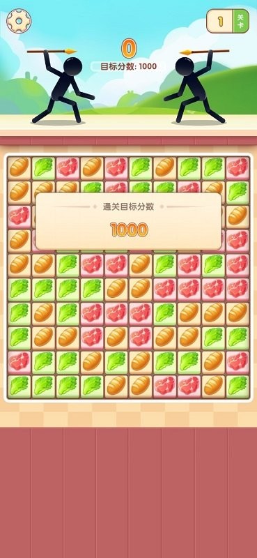 2、在关卡界面,点击【1】关卡进入,正式展开消除挑战,为后续游戏进程奠定基础。
