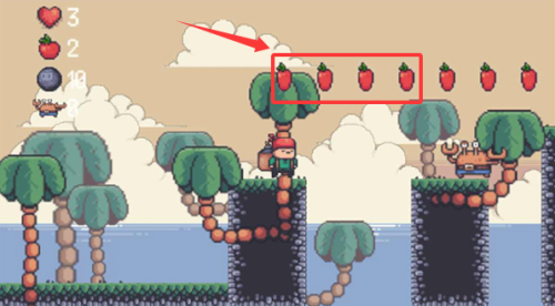 3、你需要注意棕榈树随机掉落的果实炸弹和跳跃高度,按住跳跃键角色会跳得更高。