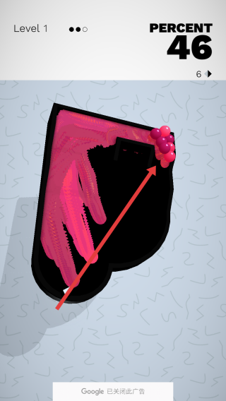 2、通过滑动屏幕灵活操控颜料球移动,移动颜料球在复杂路径上给图案涂满颜料。