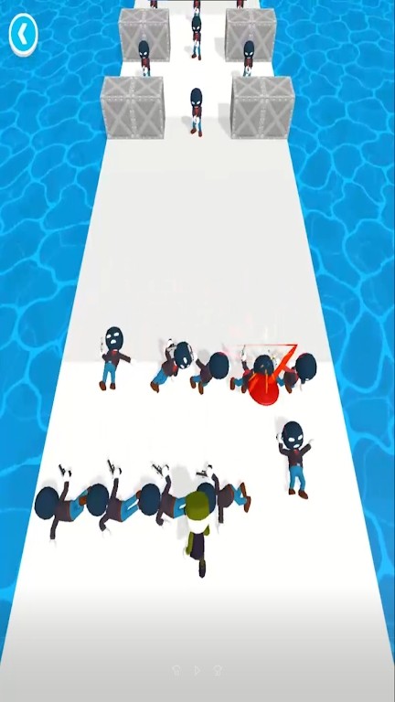 2、按住鼠标划线击倒敌人,优先升级武器基础属性如攻击速度与伤害值,解锁特殊技能如盾牌冲锋长矛连击,注意收集赛道中的双倍金币道具。