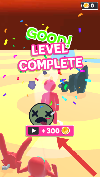3、表示关卡顺利完成,中间有角色,背景中五彩纸屑增添了通关的欢庆氛围,整体展现了通关后的反馈与奖励机制。