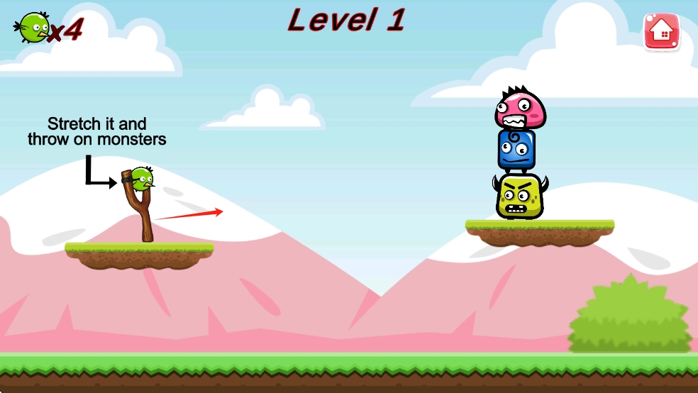 1、经典弹射玩法:继承传统弹弓弹射机制,结合物理碰撞规则设计关卡,考验玩家角度计算与力度控制能力。