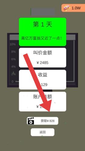 1、第1天界面,点击【获取¥828】(看广告)增加账户金额,助力财富积累,开启财富增长。