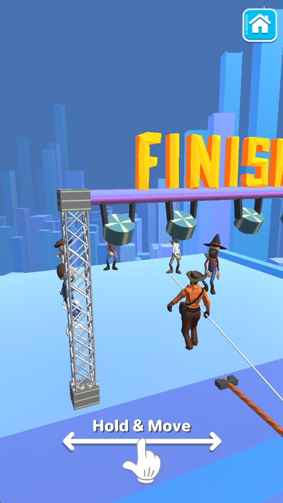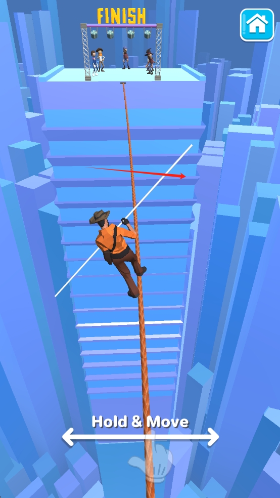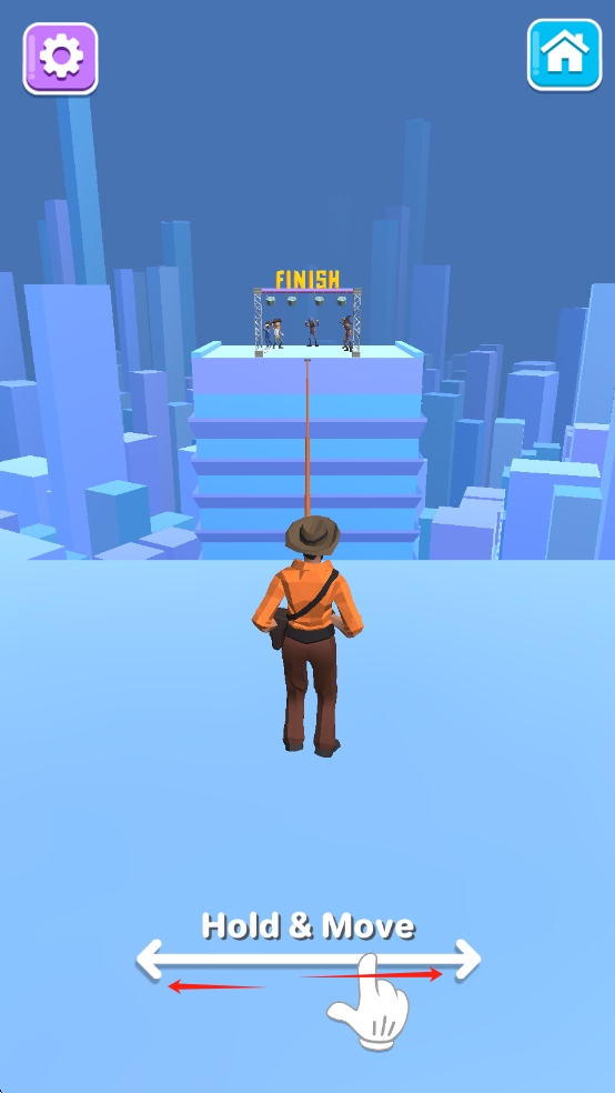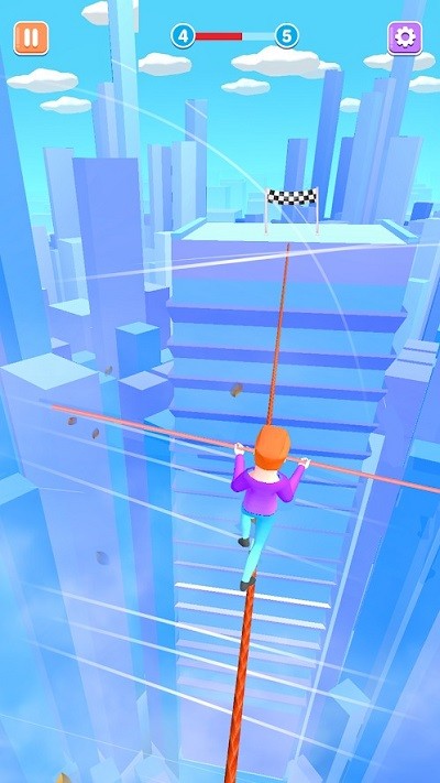1、踏入滑索世界,玩家首先在起点长按屏幕校准重心,通过左右滑动控制角色在钢索上保持平衡,逐步适应空中滑行的物理惯性。