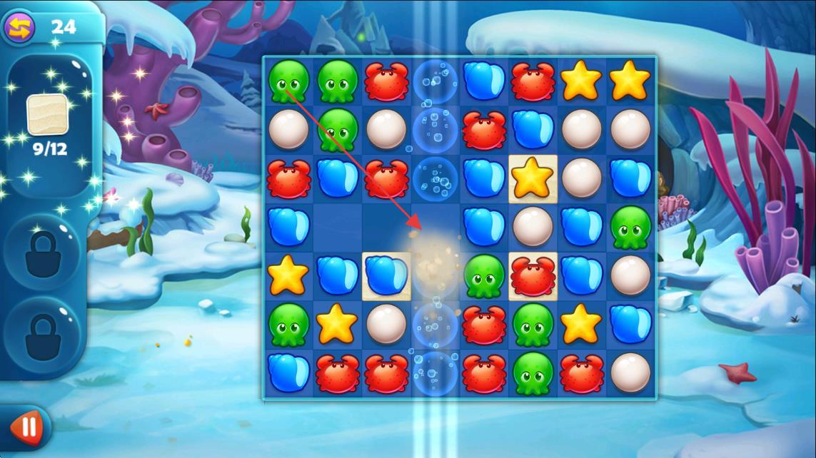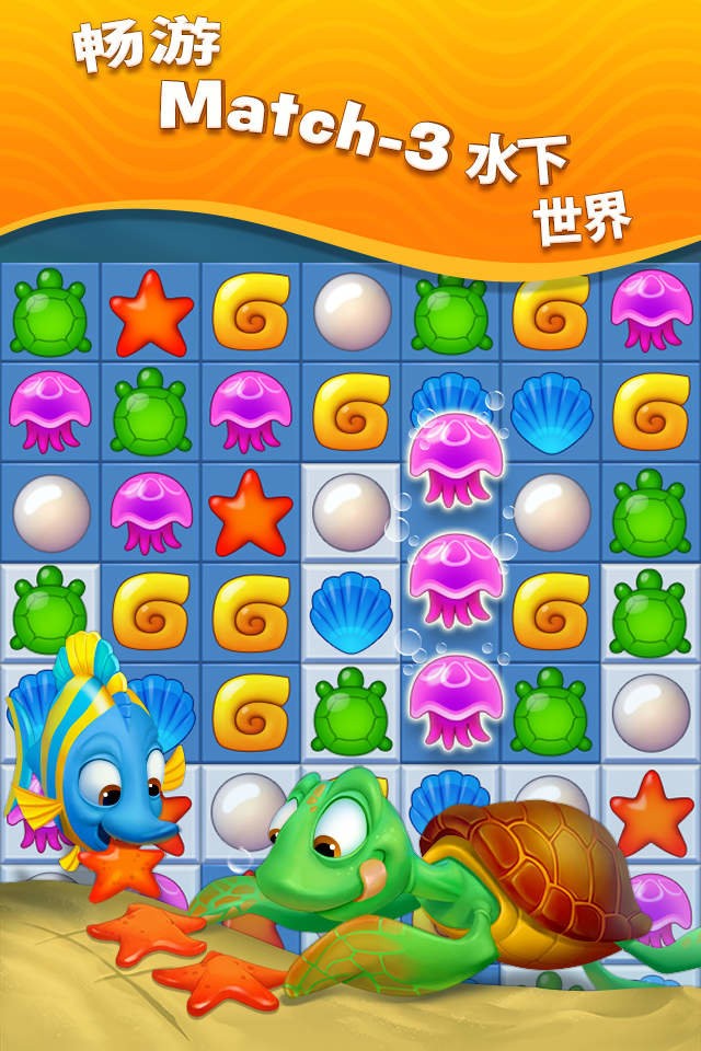 1、双玩法融合创新:三消闯关获取资源与水族馆经营养成相结合,既考验消除策略,又需合理规划资源分配,打造个性化海底生态。