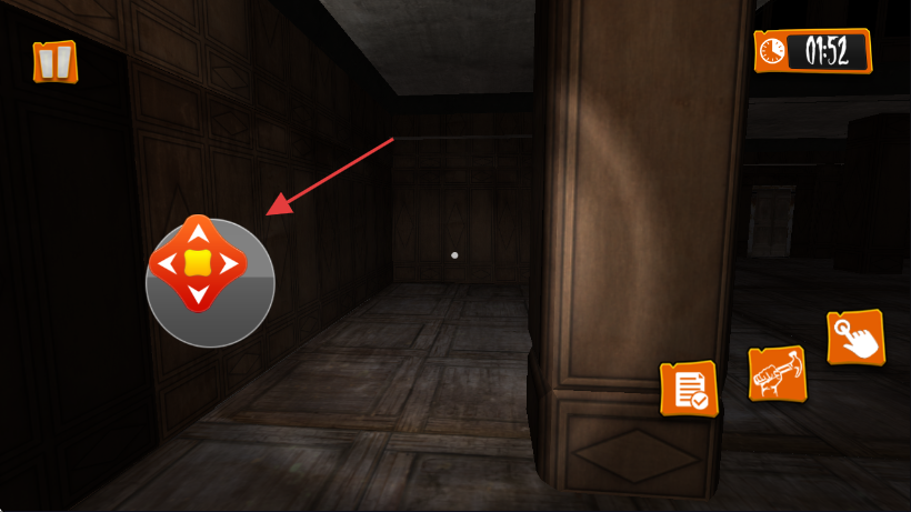 2、通过左下角【操控按钮】控制角色在房间内移动,探索场景。