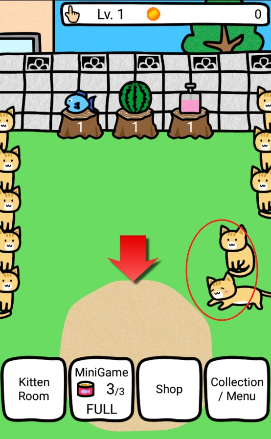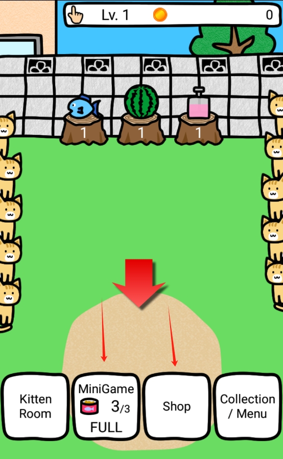 1、初次进入手指小猫世界,玩家从一片简易小窝开始,点击“召唤猫咪”按钮,迎接第一只可爱小猫,开启养成之旅。