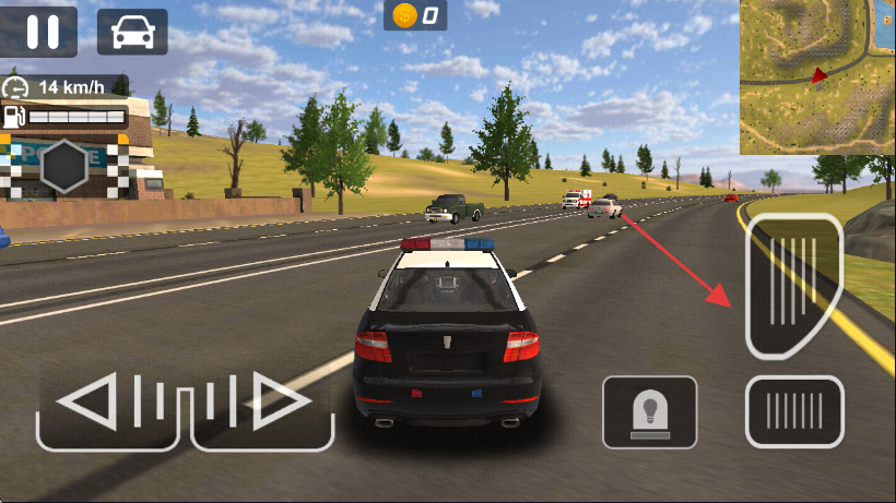 3、利用右侧【加速按钮】提升车速,在道路上执行任务,注意交通状况和任务目标。