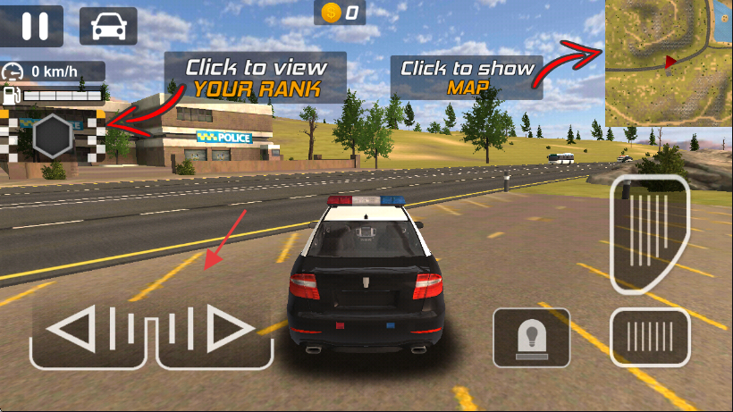 2、通过左下角【方向按钮】操控警车移动,点击【Click to view YOUR RANK】查看排名,【Click to show MAP】查看地图掌握位置。