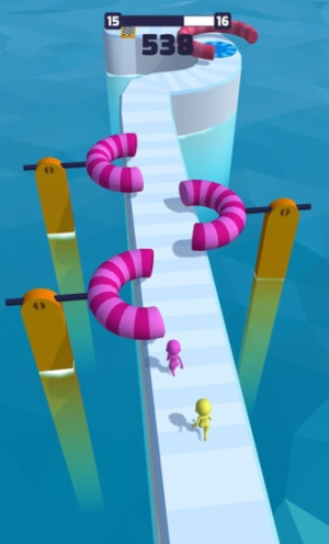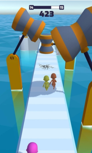 1、 操控橡皮人角色在赛道上奔跑,避开各种障碍物,完成无尽的闯关挑战。