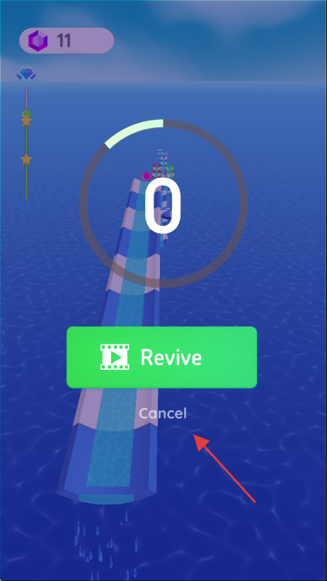 3、若游戏失败出现【Revive】和【Cancel】按钮,可选择【Revive】复活继续游戏或【Cancel】结束当前尝试。