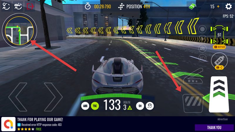 2、左上角小地图显示路线和当前位置,要注意提前预判走位,以便使出漂移。