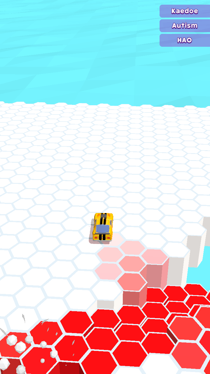 2、驾驶黄色赛车在六边形赛道行驶,注意避让红色区域,避免赛车坠落。
