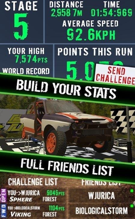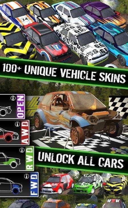 3、多元车辆体系:涵盖前轮驱动全轮驱动等多类别赛车,每辆车加速性能悬挂调校不同,支持升级引擎变速箱等部件提升越野能力。