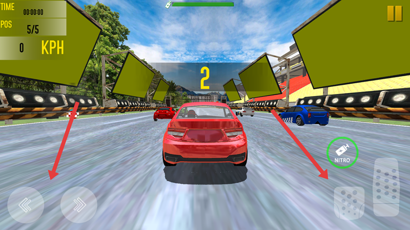 3、左手控制方向,右手分别控制倒车和油门,更有额外的NITRO氮气加速。