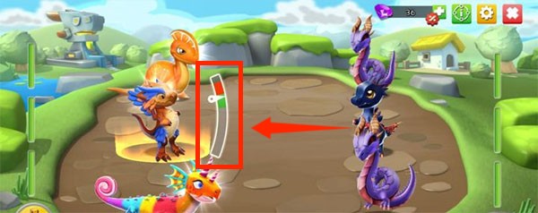 3、等指针到绿色时候点击屏幕,释放小龙的大招。