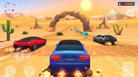 1、全3D赛道:立交桥多层交错设计,捷径触发需要特定车速才能飞跃通过。