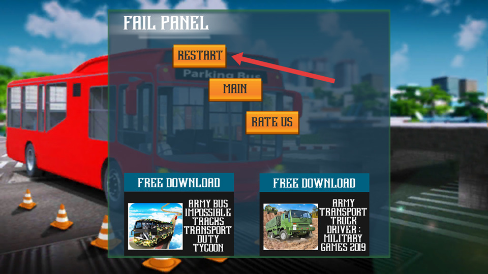 2、注意不要发生碰撞或剐蹭,若任务失败,点击RESTART重来。
