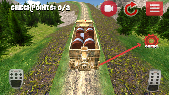 3、默认重力感应控制车辆方向,点击右侧的CONTROL齿轮可切换为按键。