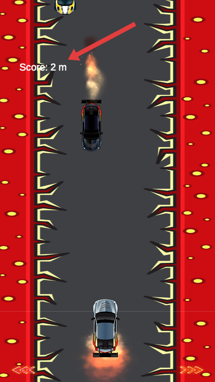 2、游戏过程中,留意屏幕上的【Score】提示,通过在赛道上操控赛车前进积累分数,同时注意避开赛道两侧的障碍。