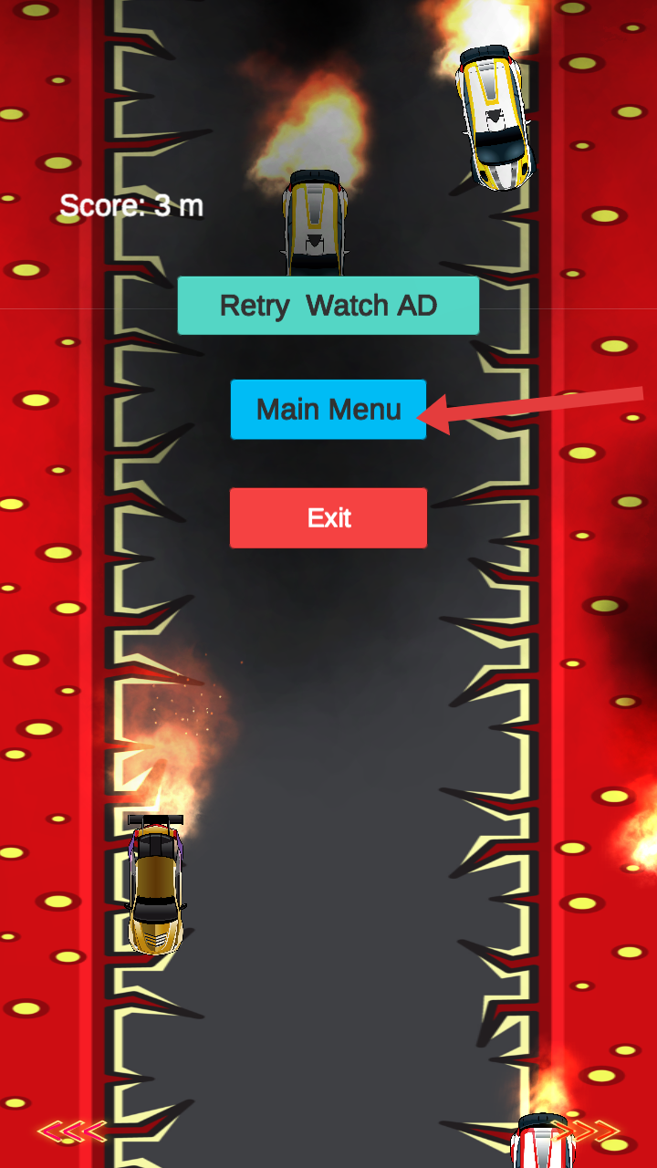 3、若游戏失败,会出现操作选项,我们选择点击【MainMenu】(主菜单),返回游戏主界面。
