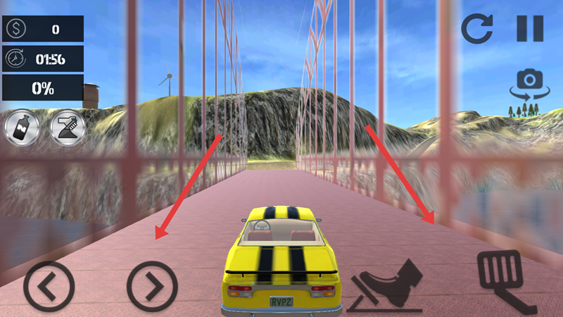 3、左手控制车辆方向,右手分别控制刹车和油门,长按启动。