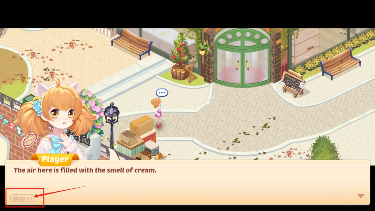 2、在剧情对话界面,若不想观看,点击Skip按钮,跳过对话进入游戏。