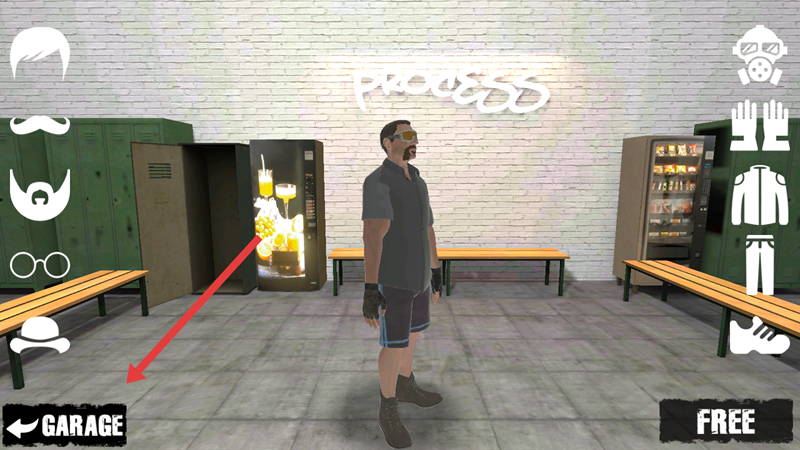 1、初次进入游戏,可对角色进行个性化定制,然后点击左下角GARAGE进入车库。