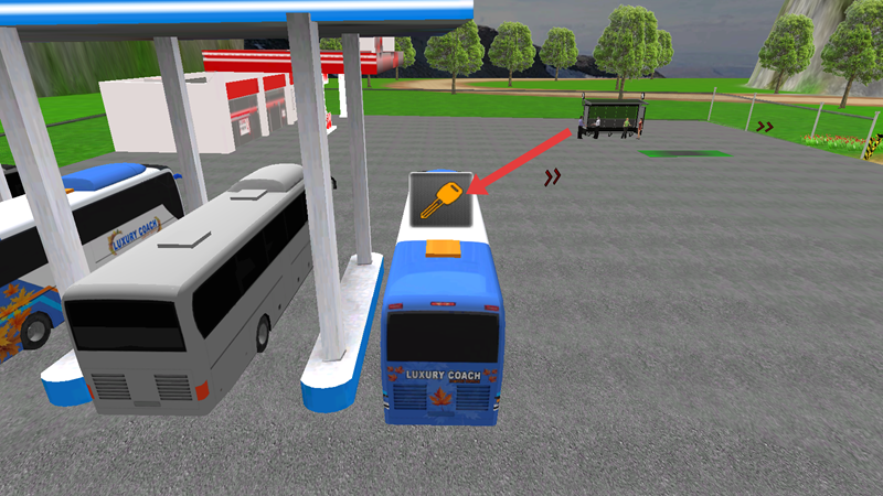 2、选择关卡后,进入游戏,点击公交车上面的钥匙图标启动车辆。