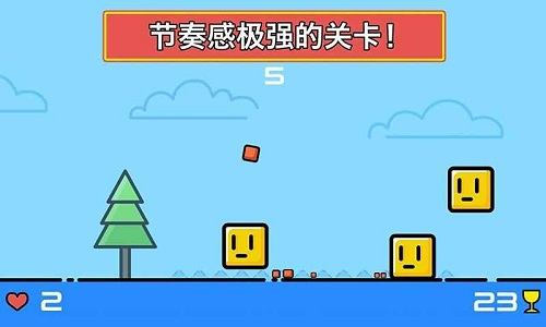 1、极简视觉设计,采用扁平化美术风格,通过明快的色彩对比突出游戏核心元素。盒子与障碍物的造型都经过精心简化,确保视觉清晰度。