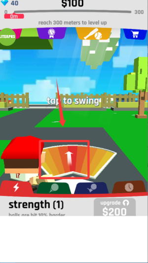 1、观察转动的指针,在最佳击球区间点击屏幕完成击球,时机把握影响飞行距离。