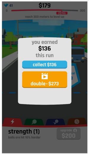 2、成长系统丰富完善,包含力量、精准度、飞行距离、弹性时间四种可升级属性。