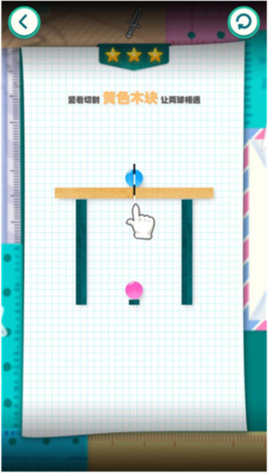 3、后期关卡要预判球体运动轨迹,复杂地形可先做试验性小切割。保留切割次数应对突发情况,确保两球最终相遇。